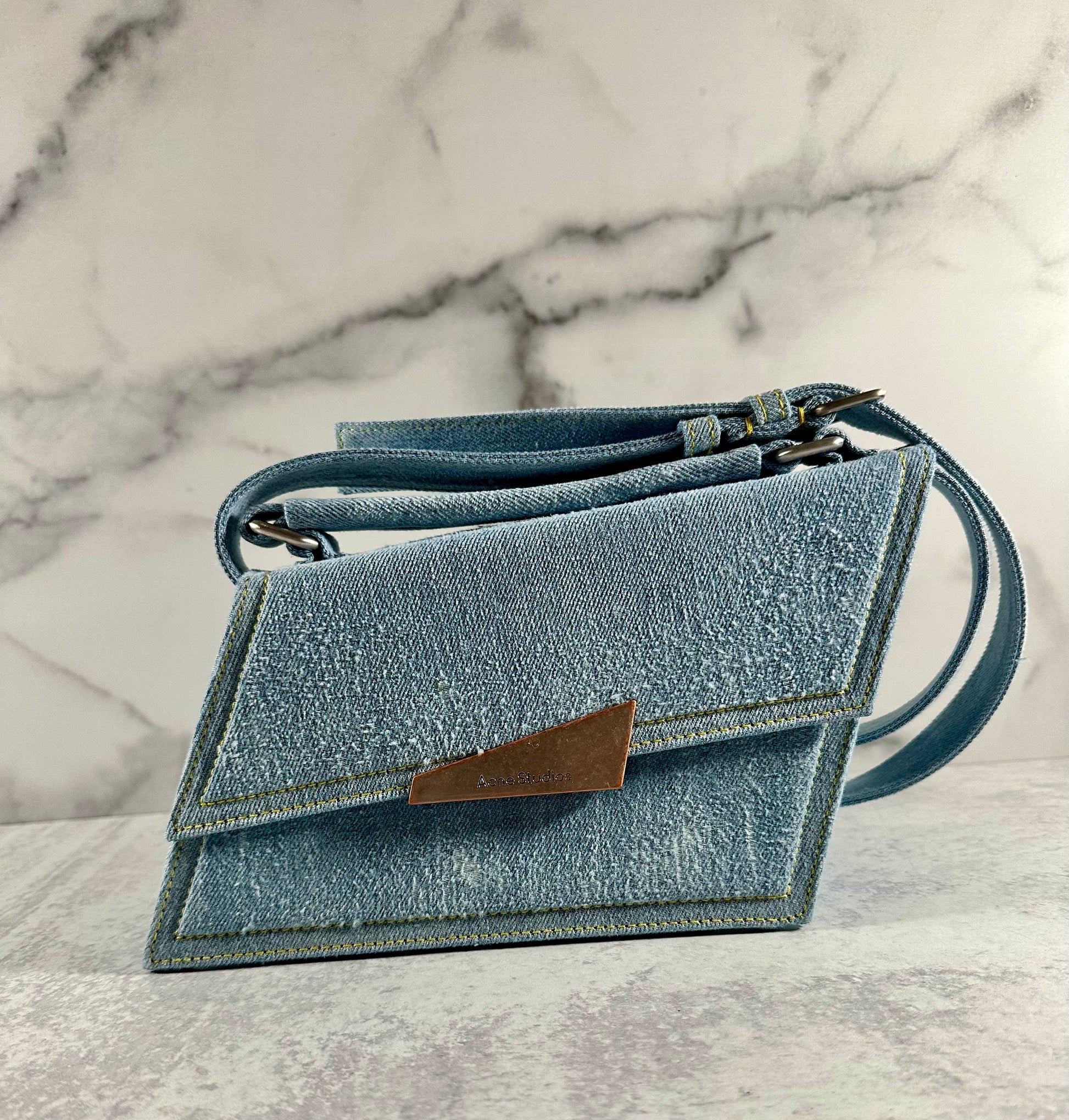 The ACNE STUDIOS Asymmetric Denim Tote Bag is a striking blend of avant-garde design and practicality. Crafted from high-quality denim, its asymmetrical silhouette adds an edgy and artistic touch to your ensemble.