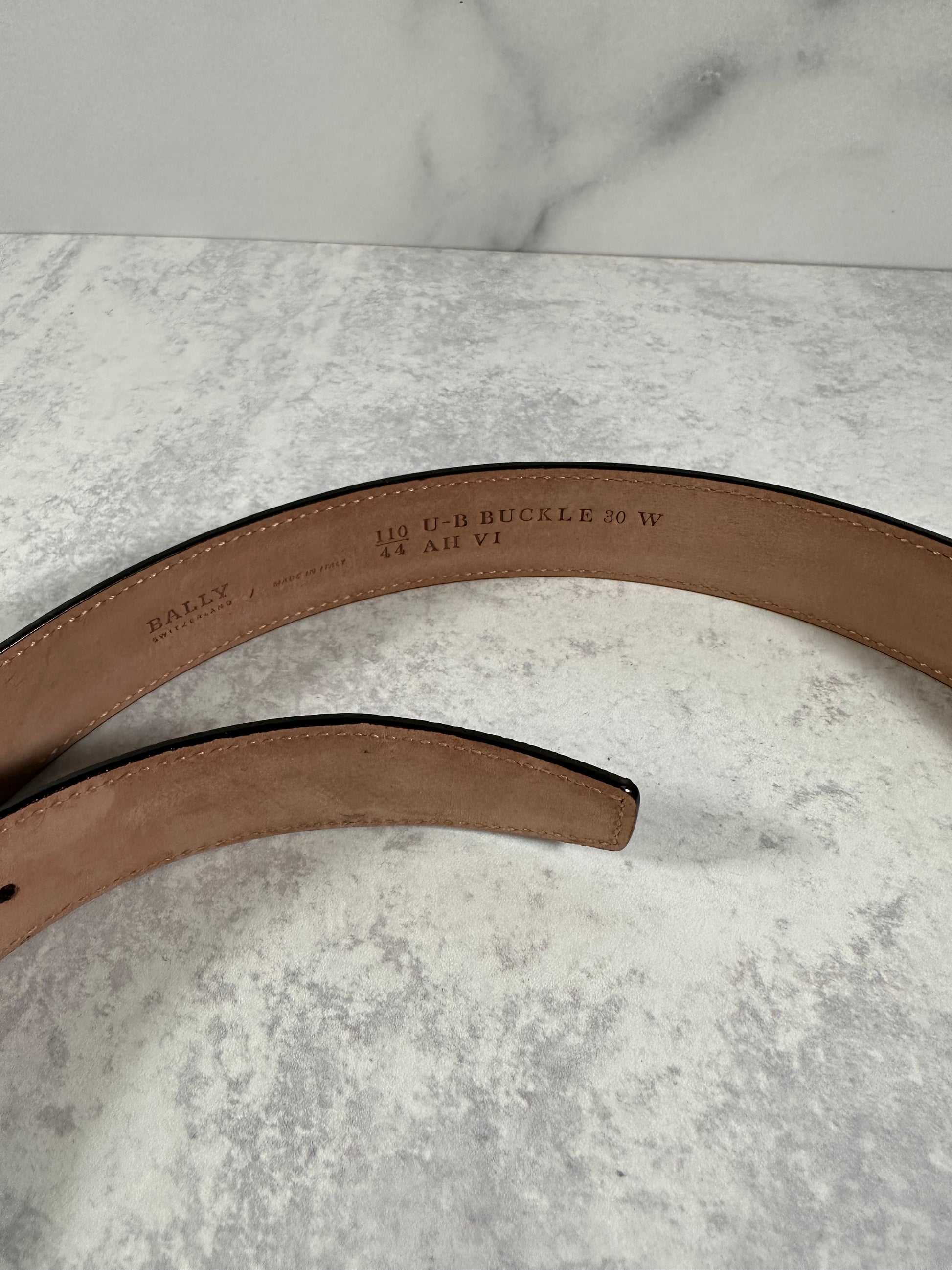 Bally’s signature B buckle pulls together any look with its timeless, chic and effortless design. Elevate your looks with this Bally buckle belt!