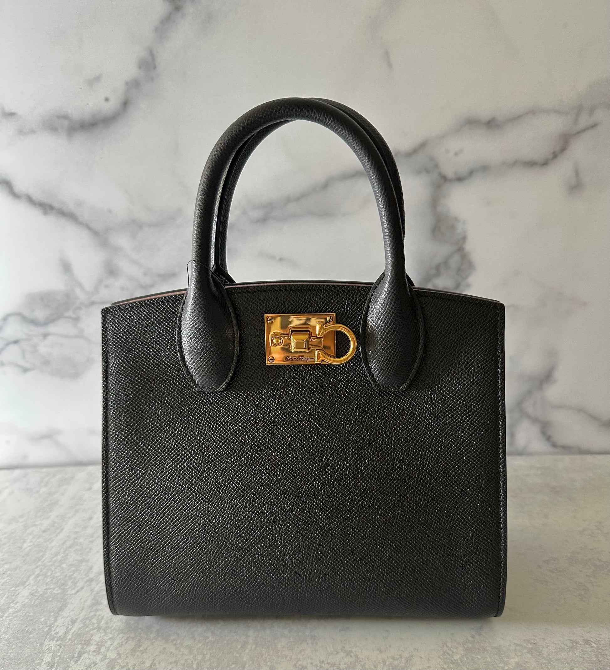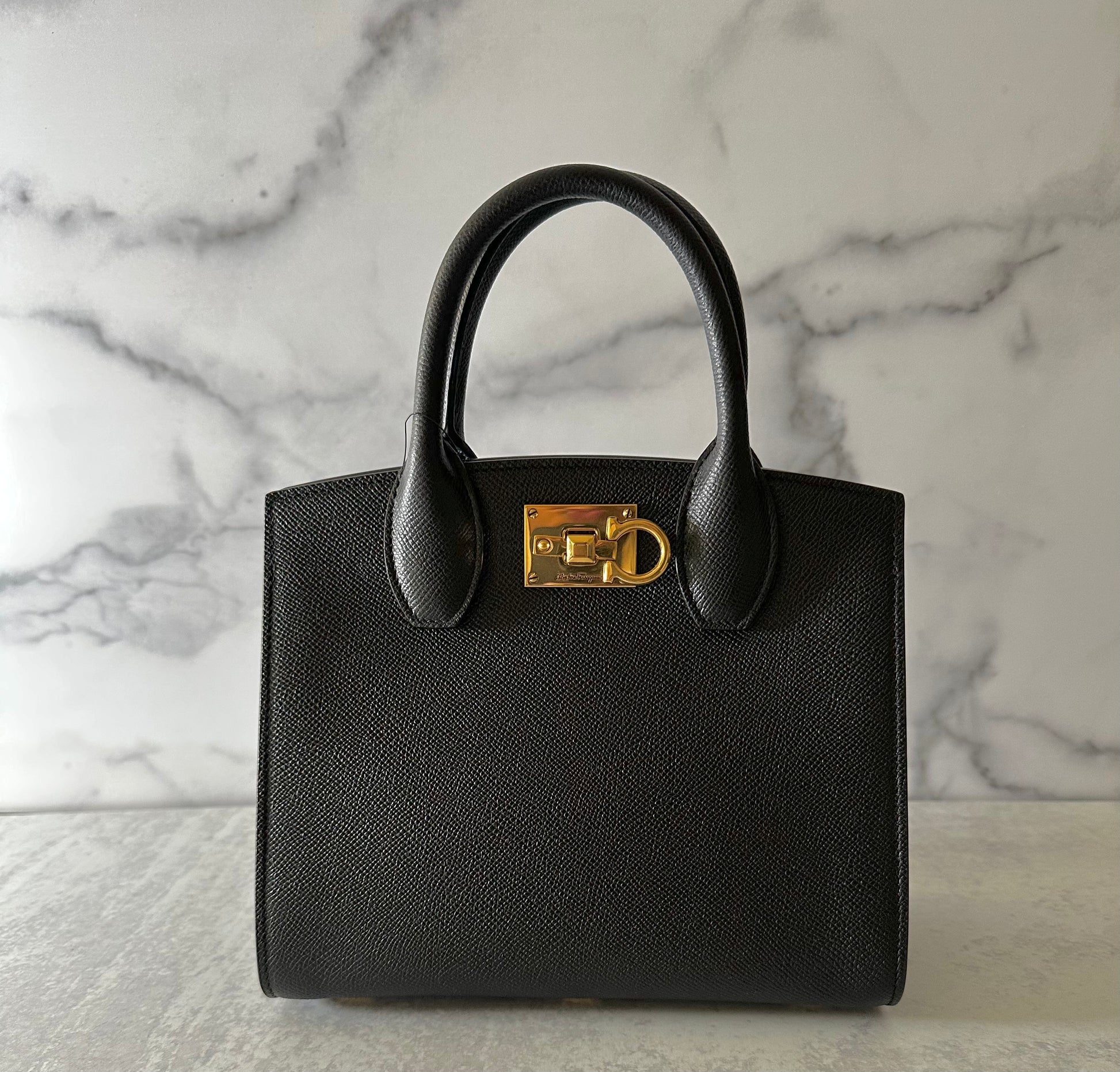 This chic bag packs plenty of room for all of your essentials, so it's perfect for any workday or weekend excursions. A distinguished shape, textured leather, and Gancini buckle in gold toned hardware this tote is made to be loved!
