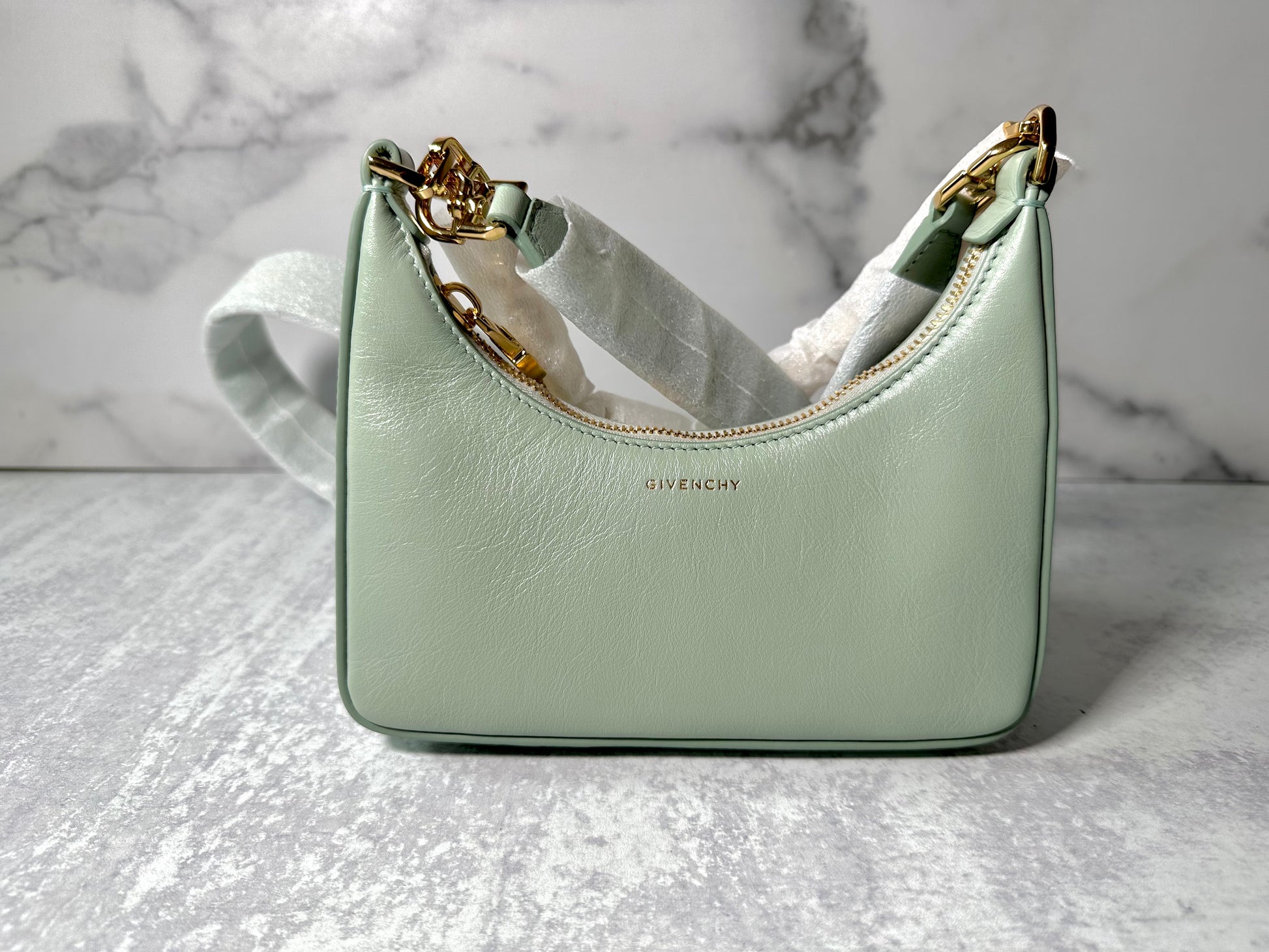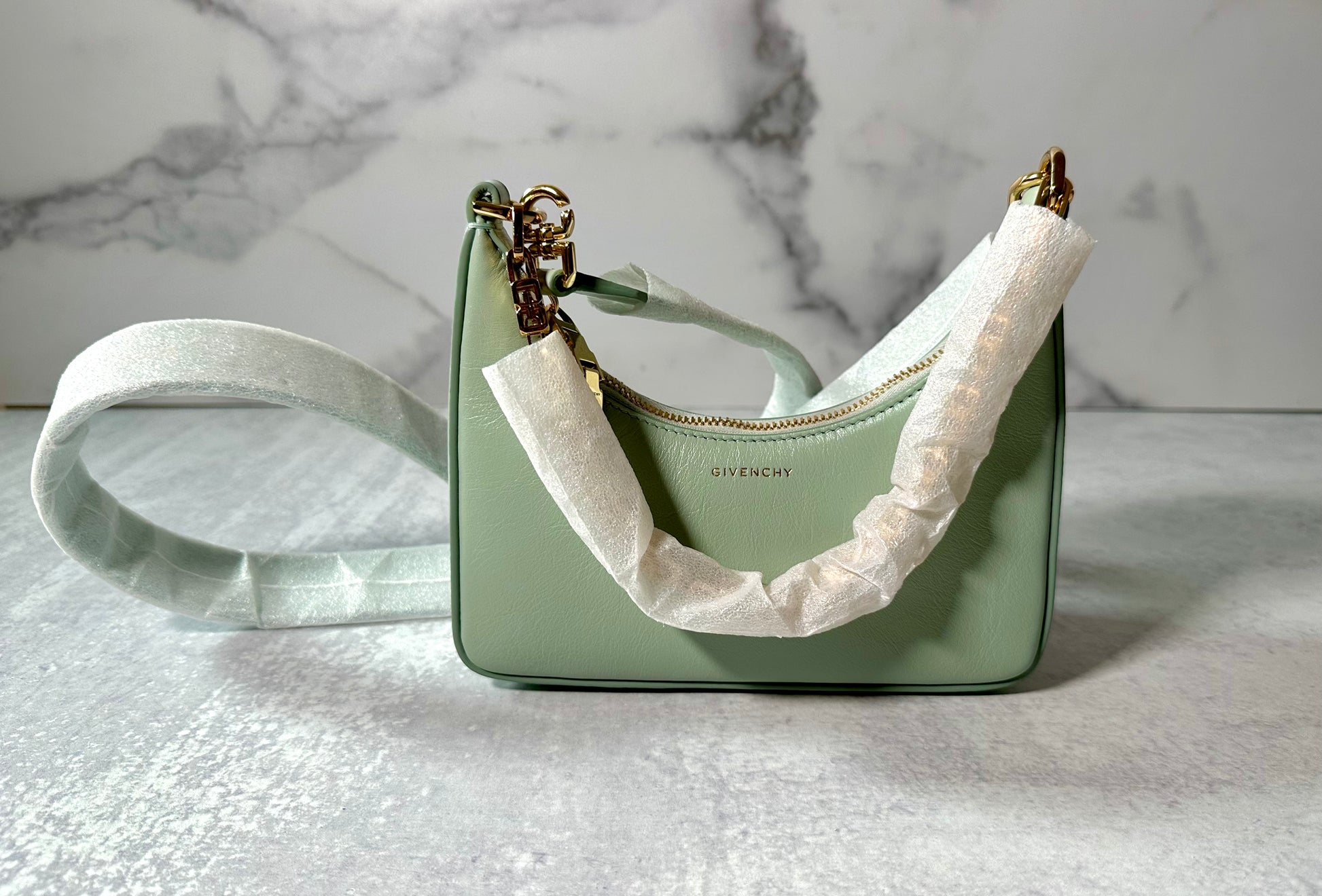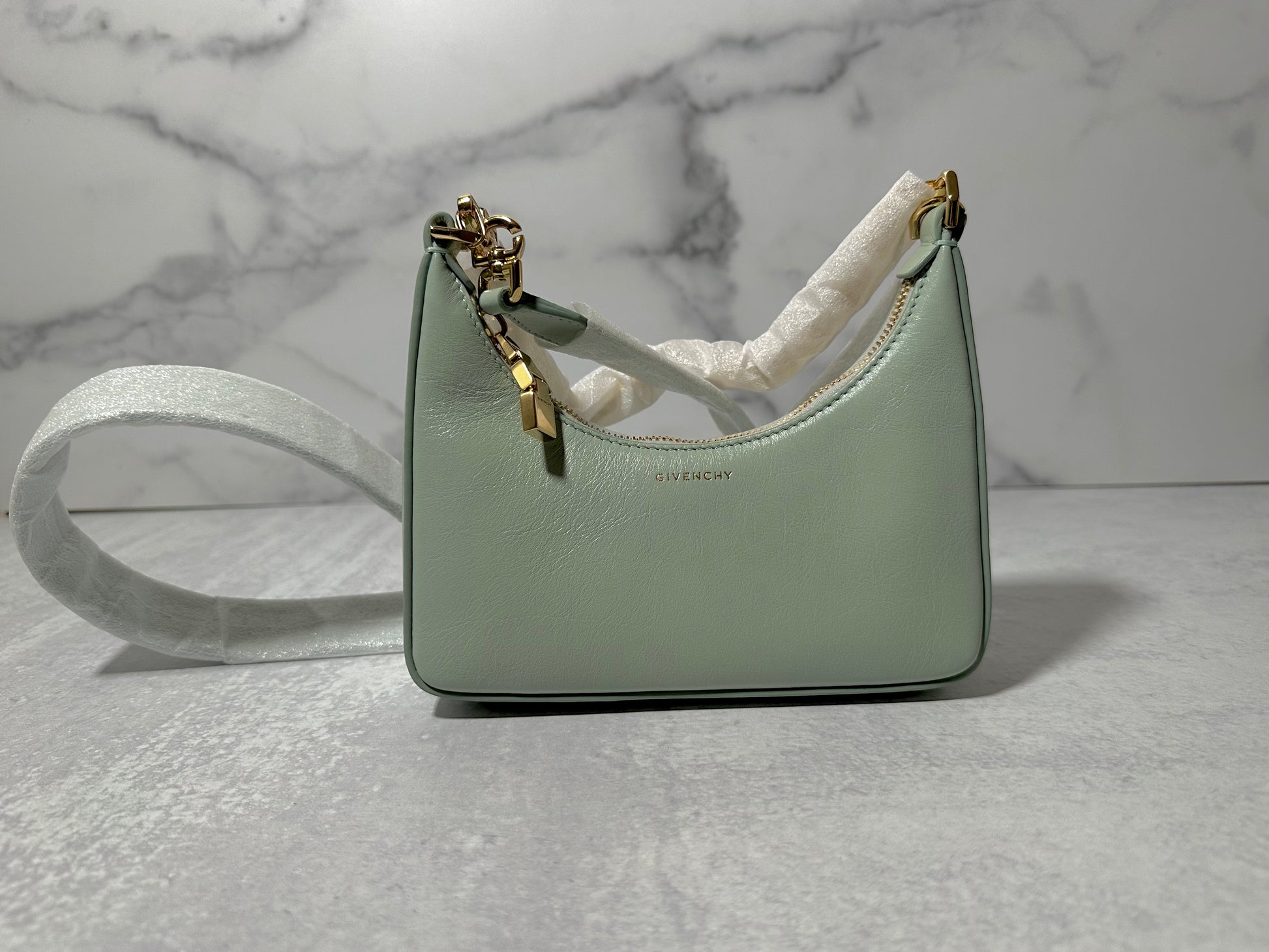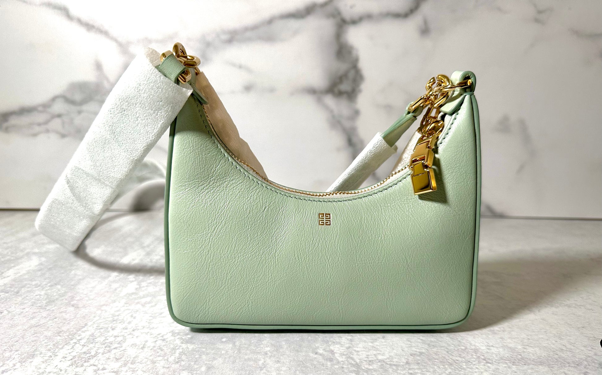 Givenchy moon cut out mini- chain embellished leather shoulder bag. Each link on this stylish bag is shaped into a G to resemble the Maison's G moniker. This stunning color and playful accents make it suitable for any special occasion.